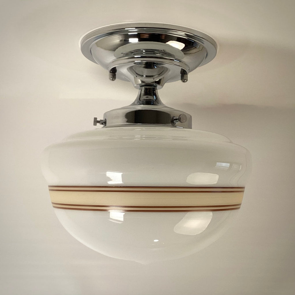 New Mocha & Cream Banded Milk Glass Schoolhouse Ceiling Light